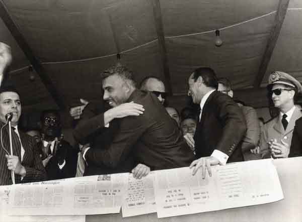 [CUMPRIMENTO ENTRE O GOVERNADOR ISRAEL PINHEIRO E O PREFEITO GERALDO ROMANO DURANTE INAUGURAO DA ELETRIFICAO DE NANUQUE]