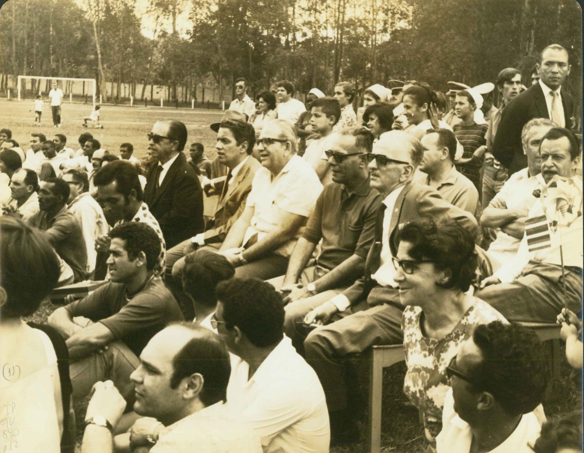 [PLATEIA ASSISTINDO A PARTIDA DE FUTEBOL, DURANTE COMEMORAES DO CENTENRIO DE RIO NOVO]