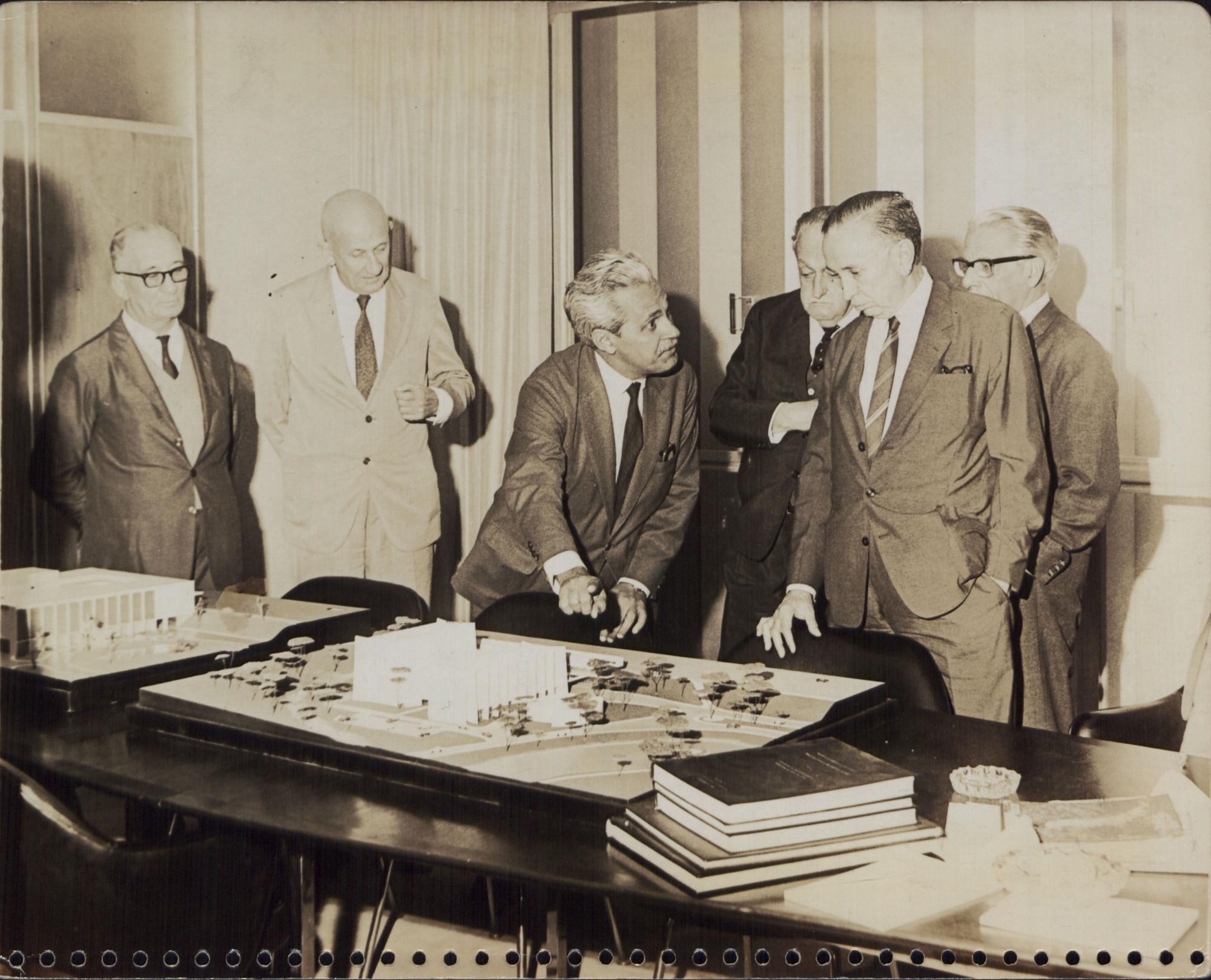 [GOVERNADOR ISRAEL PINHEIRO E OUTROS SENHORES DURANTE EXPOSIO DE PROJETO DE OBRAS]