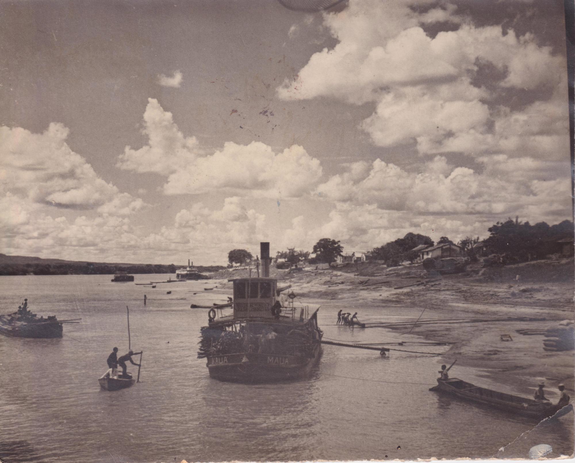 [VISTA DO RIO SO FRANCISCO COM EMBARCAES - ENTRE ELAS O BARCO MAU COM CANOEIROS]