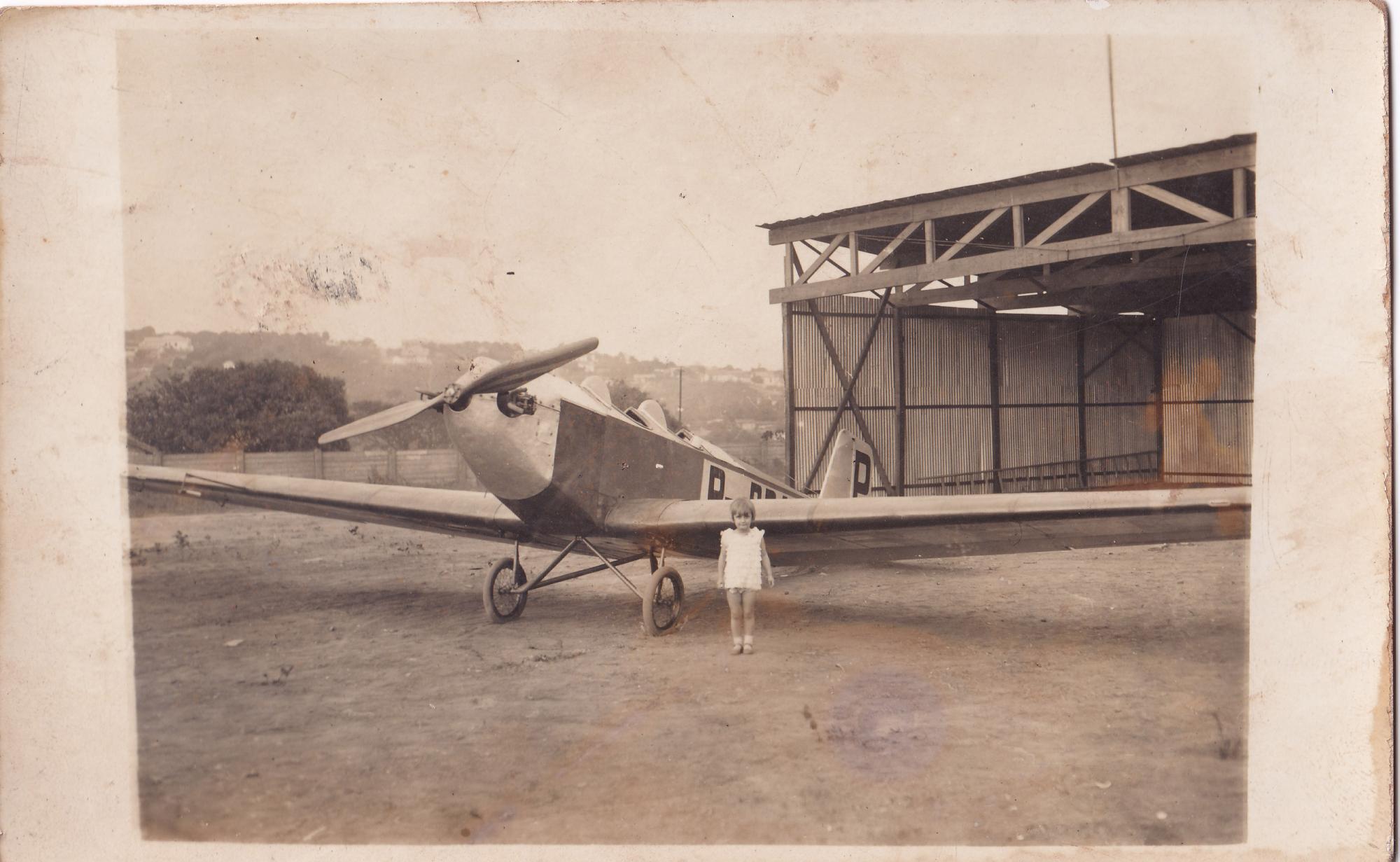 [VISTA PARCIAL DE UM HANGAR COM AVIO E CRIANA]